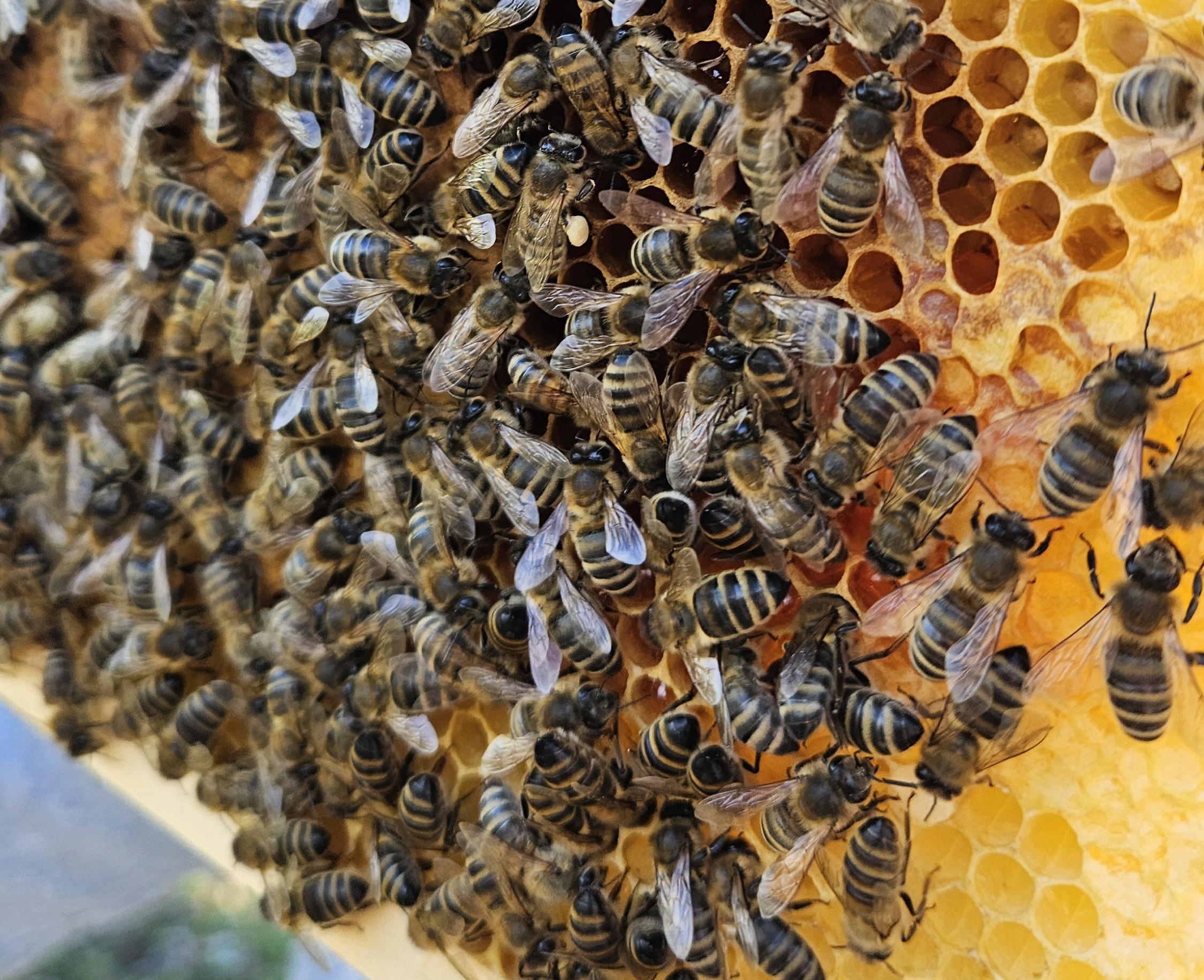 Jedes Volk der europäischen Honigbiene ist mit der Varroa-Milbe befallen. Dieser Parasit kommt ursprünglich aus Asien und ist in den 1980ern nach Österreich eingeschleppt worden. Die Varroa-Milbe setzt sich auf Larven und auch erwachsene Bienen und saugt sie bei lebendigem Leib aus. Der eigentliche Wirt, die östliche Honigbiene (Apis cerana) ist in der Lage sich selbst gegen die Varroa-Milbe zu wehren, die europäische Bien (Apis mellifera) ist jedoch nicht dagegen gewappnet und wir müssen uns als Imker um die Völker kümmern. Dafür behandeln wir die Stöcke mit Ameisensäure beziehungsweise Oxalsäure. Die Bienen überleben diese Behandlung, die Milben sind jedoch anfällig für die Säuren. Diese Behandlungen finden natürlich nur statt, wenn es notwendig ist, und wenn es dadurch nicht zu einer Kontamination von Honig oder Pollen kommen kann.